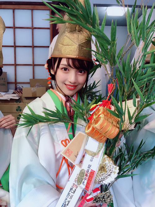 【可愛らしい福娘の方に縁起物を括り付けていただきました♪】